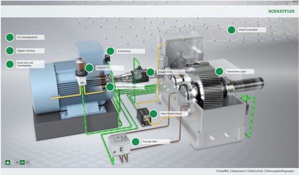 Schaeffler hat Konzepte entwickelt, wie unterschiedliche Kundenanwendungen in die digitale Welt überführt und ganzheitlich optimiert werden können. Die Plattformkonzepte kombinieren mechatronische Produkte, Zustandsüberwachungssysteme und digitale Services zu anwendungsspezifischen 4.0-Lösungspaketen. Auf deren Grundlage können konkrete kundenindividuelle Angebote konzipiert werden – die Gesamtanlageneffektivität immer im Fokus.
