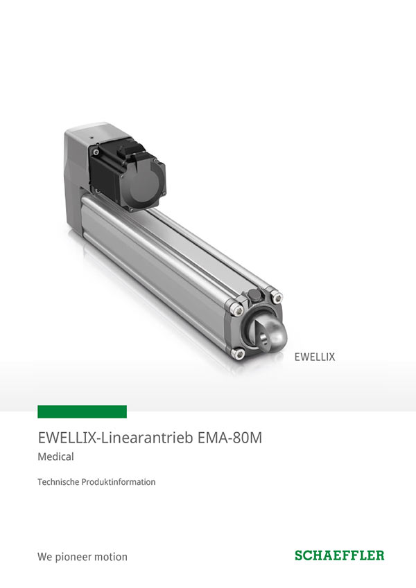 Der modulare elektromechanische Linearantrieb EMA-80M wurde speziell für den Einsatz in der Medizintechnik entwickelt. Die Serie ist für medizinische Anwendungen zugelassen und erfüllt höchste Sicherheits- und Qualitätsstandards. Sie ersetzt unter anderem hydraulische Anwendungen in Patiententischen für medizinische Bildgebung und stellt eine optimierte Lösung für anspruchsvolle Bewegungsaufgaben dar.