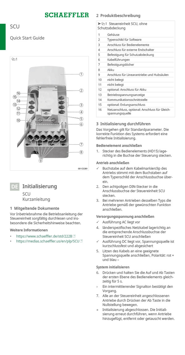 Kurzanleitung zur Initialisierung und Inbetriebnahme der SCU-Steuereinheit für einen sicheren Systemstart.